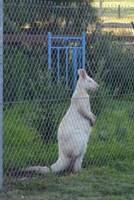 | White roo at Hunter Valley Zoo - best seen for free from next door's driveway. |